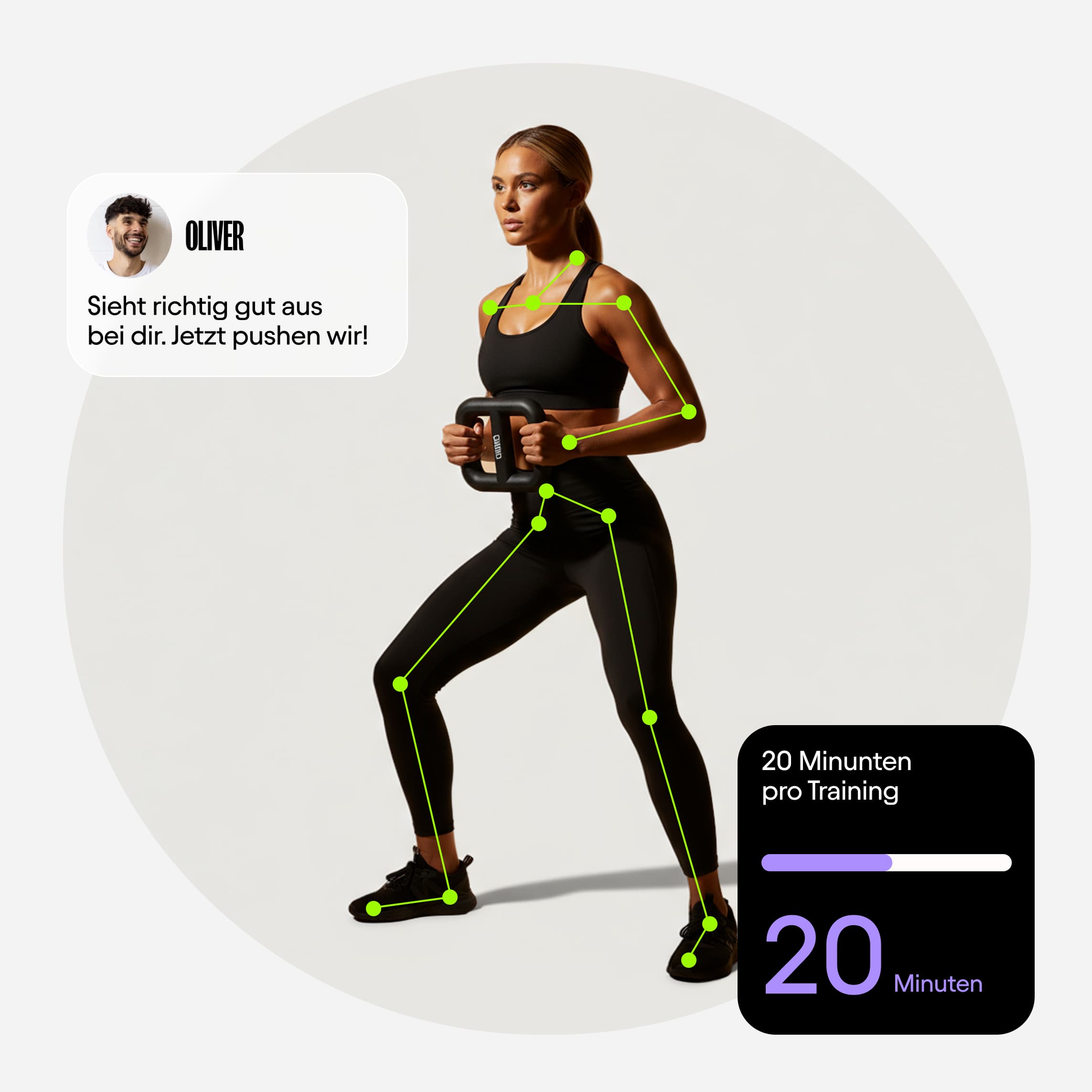 Jedes Workout kombiniert Muskelaufbau, Cardio und Mobility in nur 20 Minuten.