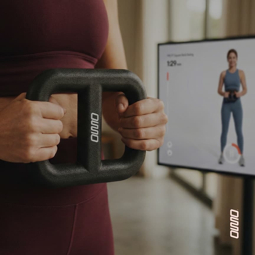 Das OSSO Tool wiegt 2,2 kg. Klingt nach wenig. Ist es nicht. Denn Kraft = Masse × Beschleunigung. Je schneller du das Tool bewegst, desto mehr Kraft müssen deine Muskeln aufbringen — mehr als an schweren Maschinen im Gym.