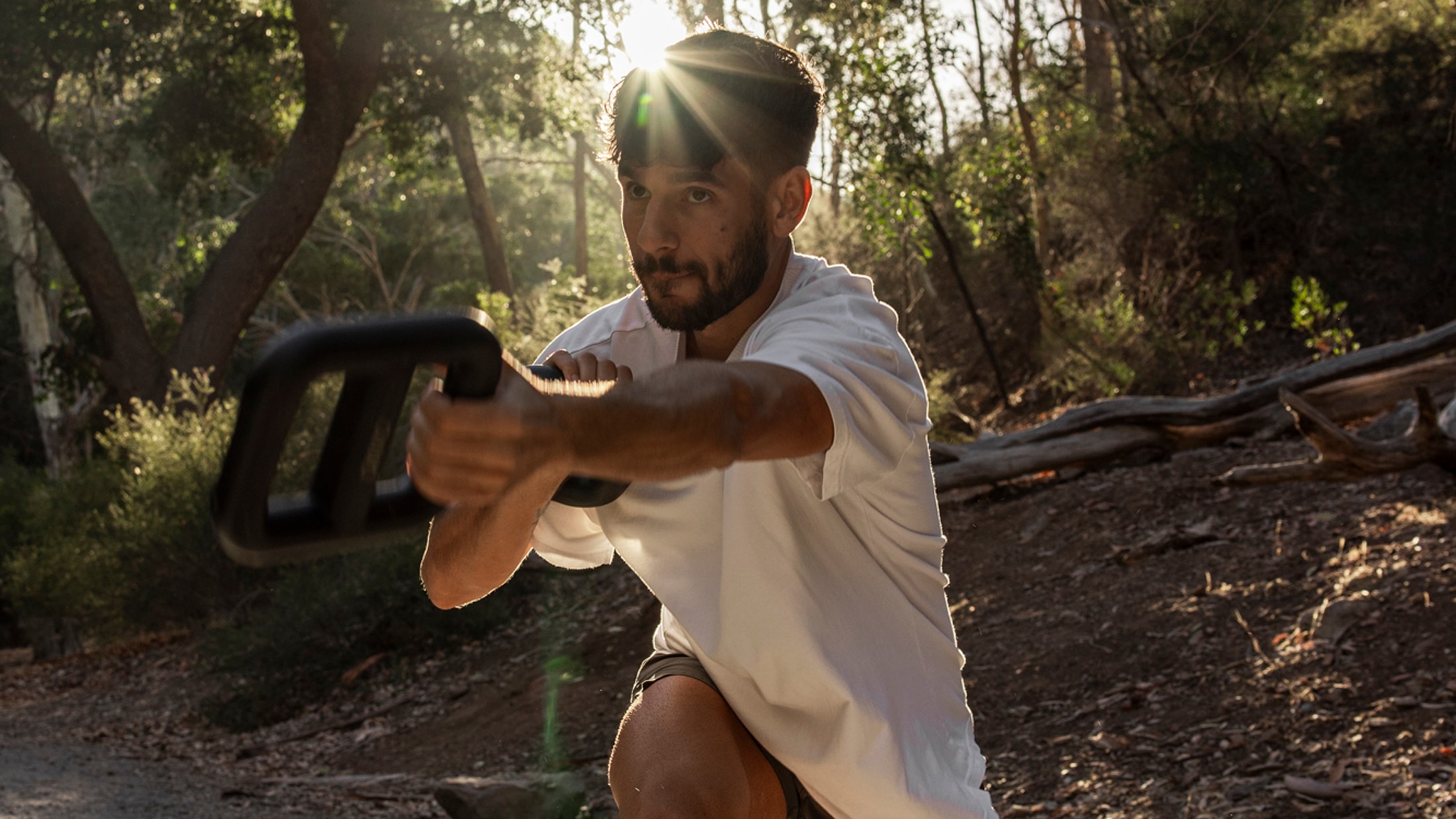 Trainiere überall. Eine Hantel, die in jede Tasche passt.