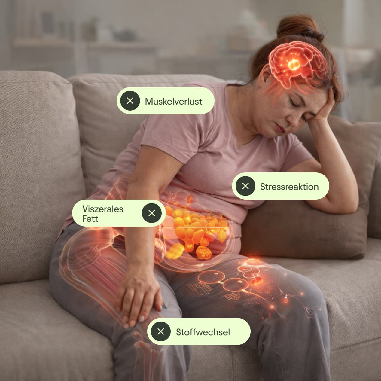 Das Ergebnis ist kein einzelnes Problem, sondern eine systemische Veränderung: weniger metabolische Aktivität, mehr viszerales Fett und ein Körper, der Energie spart statt verbrennt.